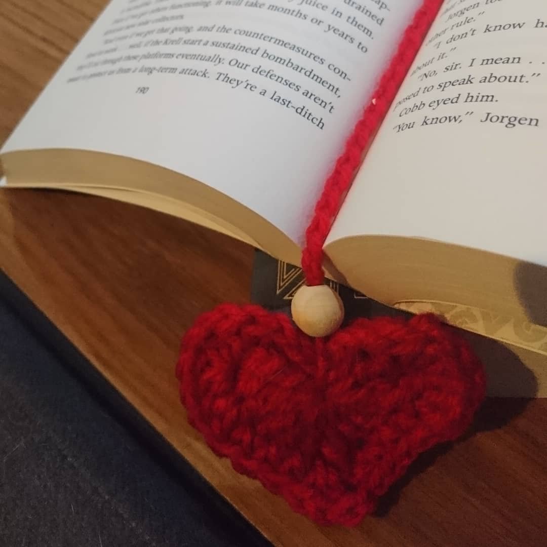 While my husband wouldn’t be caught dead using one of these I did like the simplicity of the bookmark and speed at which this bookmark came together. You could make this bookmark with any crochet heart pattern you wanted but I’m going to give the pattern I used below.