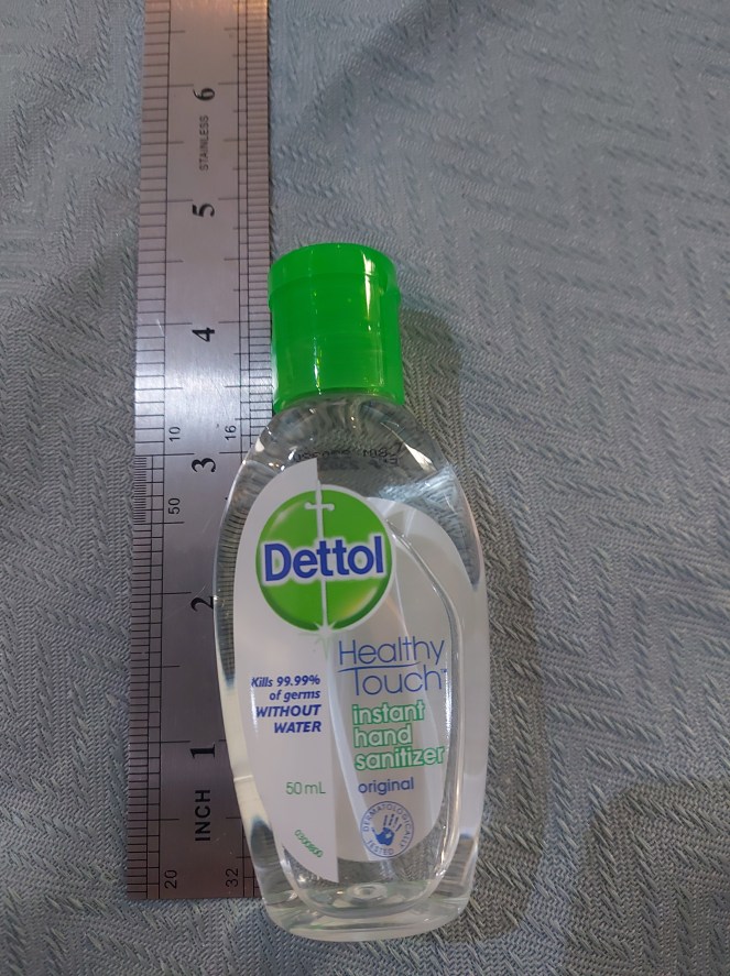 - Dettol 50ml hand sanitizer or similar bottle. Bottle measurements are given below to assist with scaling