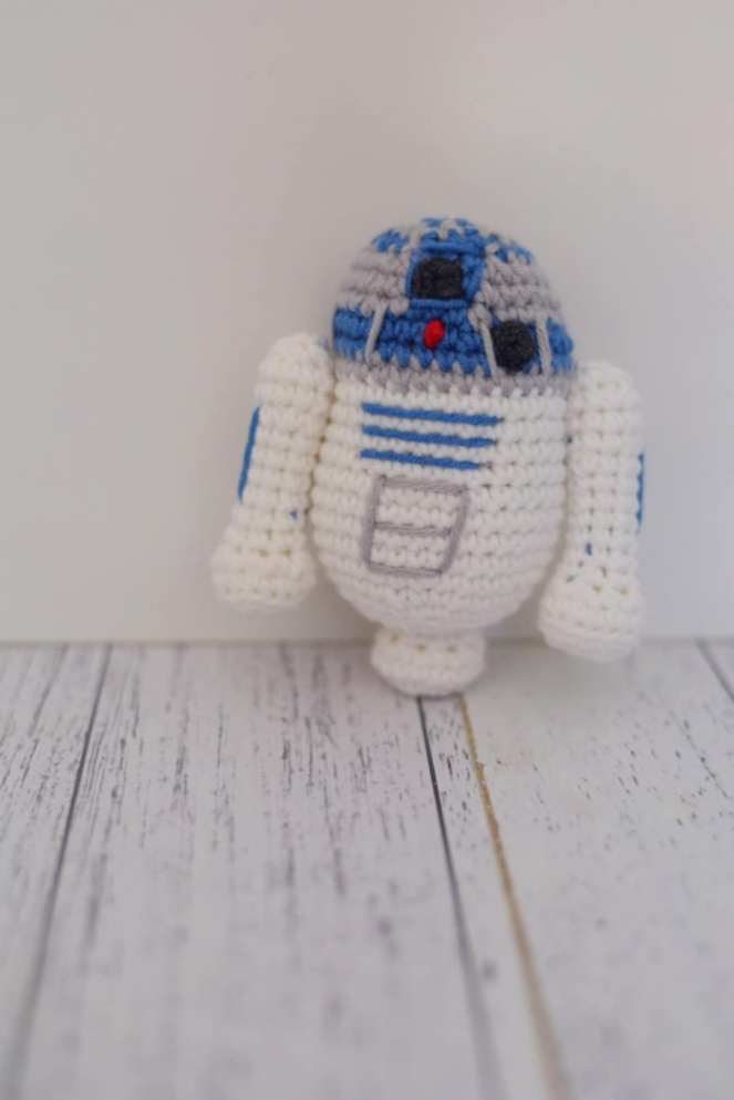 - Prepare the figurines: Insert a small jewellery loop into each figure. If this is hard to acheive with your selected yarn, you can sew these in. For the Millennium Falcon, attach two loops—one at the front and one at the back for better balance.